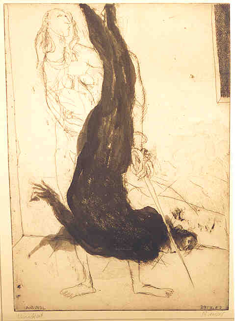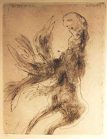 Figur mit Vogel, Radierung, 1987, 37 x 40 cm